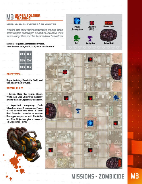 2020-02-21 : Retrouvez la 3ème Mission écrite par Guillotine Games. Entraînement de Super Soldat est une mission pour la Zombicide: Invader, Moyenne, en 6 Dalles, qui vous prendra environ 60 minutes à 6 Survivants ou plus.